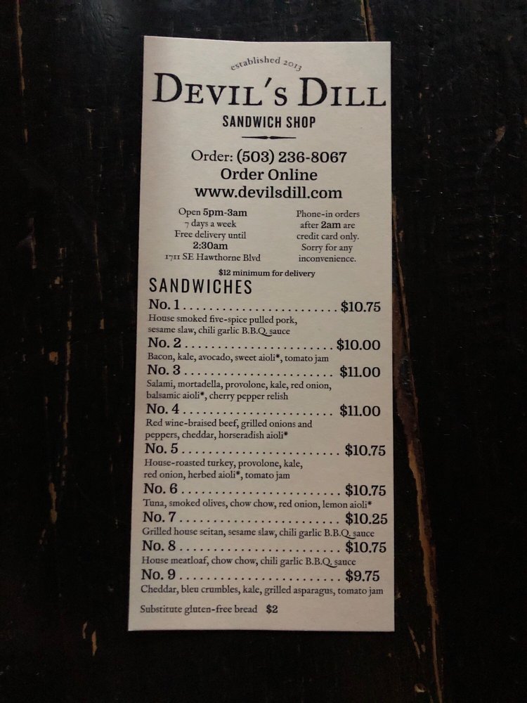 Devil’s Dill Sandwich Shop Menu